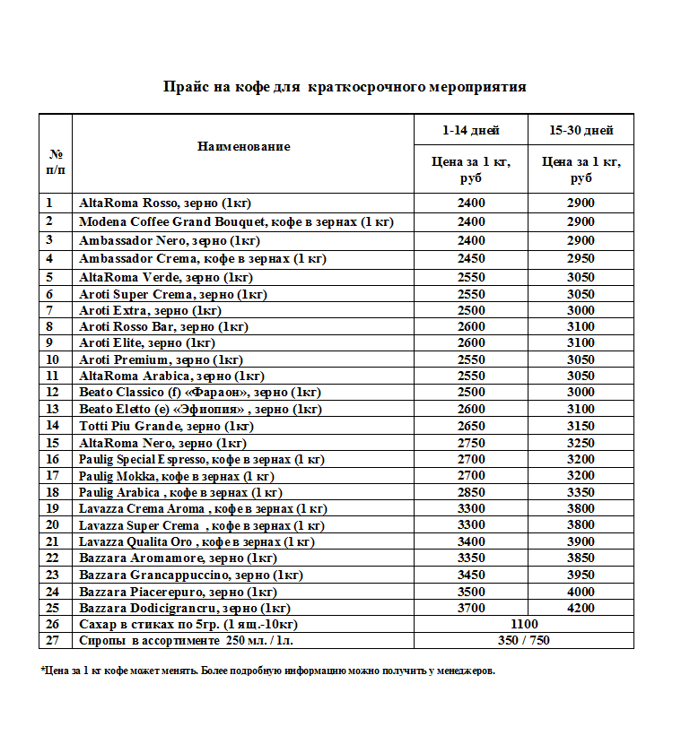 Минимальный заказ - 2 кг кофе в зерне на одну кофемашину.